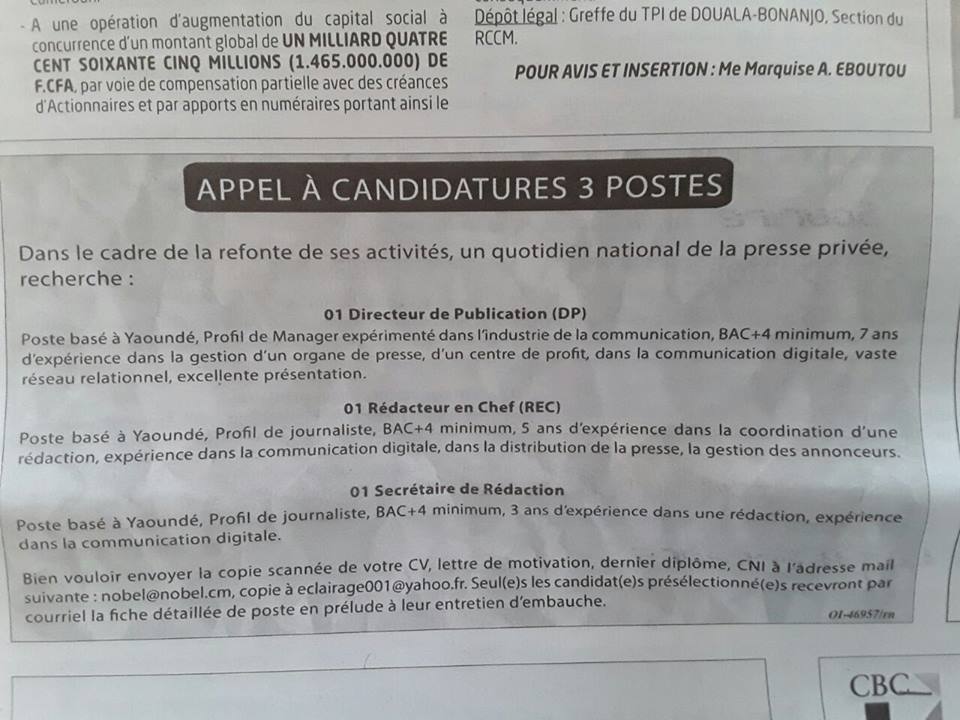 Charles Nforgang, l’un des cadres du Snjc a fait une sortie remarquable sur sa page Facebook il y a quelques jours sur la situation dans plusieurs médias du pays. Massah le post de Charles m’a appris beaucoup de choses. Il m’a par exemple appris qu’il y a des quotidiens dans ce pays où les employés accusent deux ans de salaires impayés. Je me souviens pourtant qu’un quotidien (Mutations) a été primé il y a quelques mois quelque part en Afrique. A vrai dire, je ne sais pas comment les journalistes de ce tabloïd font pour joindre les deux bouts au quotidien, mais une chose est certaine : ils y trouvent leur compte. Mon Dieu, ayez pitié de ces braves gens qui savent sur quoi ils comptent pour ne pas démissionner de ce « grand » quotidien privé qui est en train de recruter. Dans d’autres quotidiens, hebdomadaires, radios, et télévisions, j’en connais qui sont payés en monnaie de singe alors que les publicités entrent. Beaucoup travaillent même « njor », c’est-à-dire gratuitement pour bluffer les petites nanas.